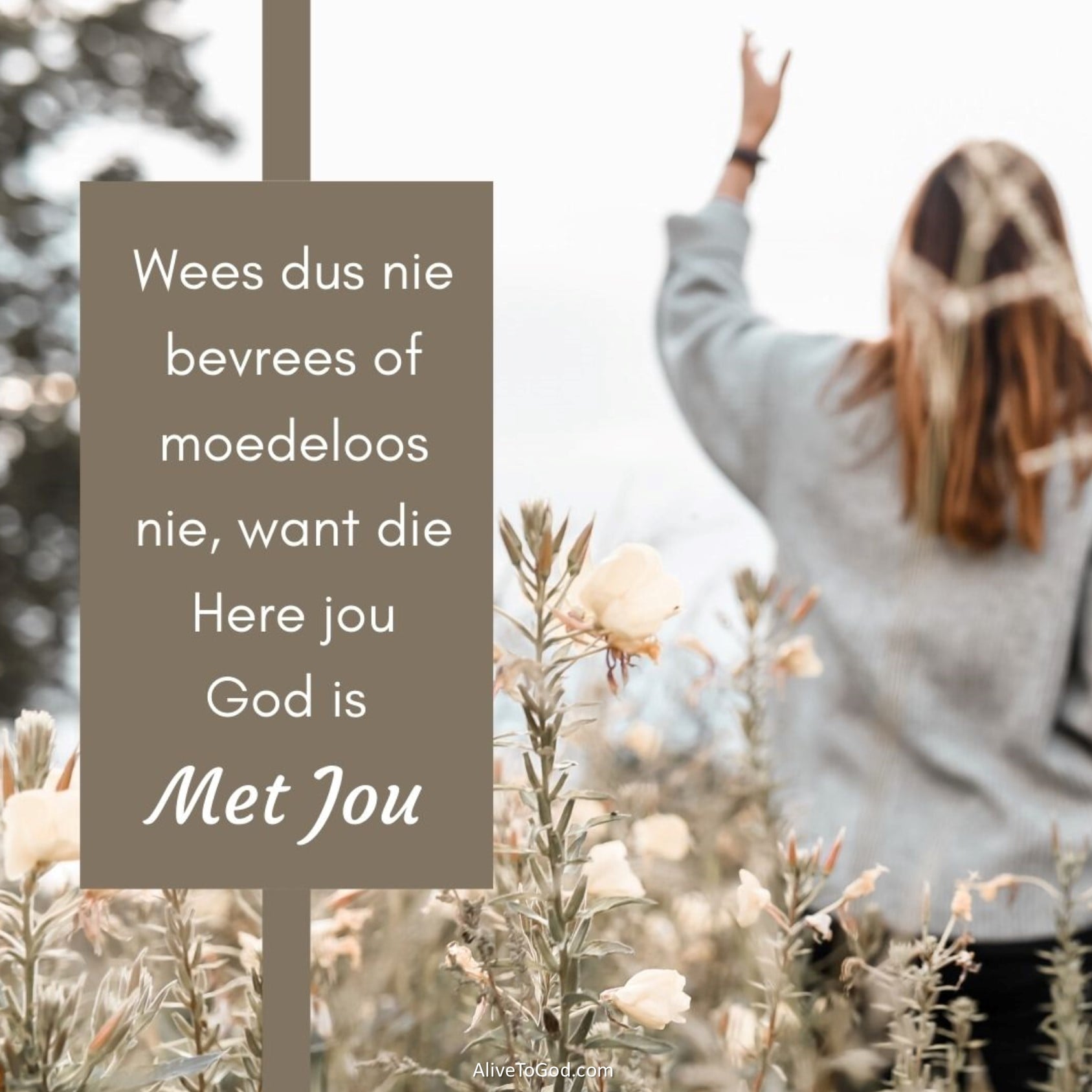 - Wees dus nie bevrees of moedeloos nie, want die Here jou God is met jou.