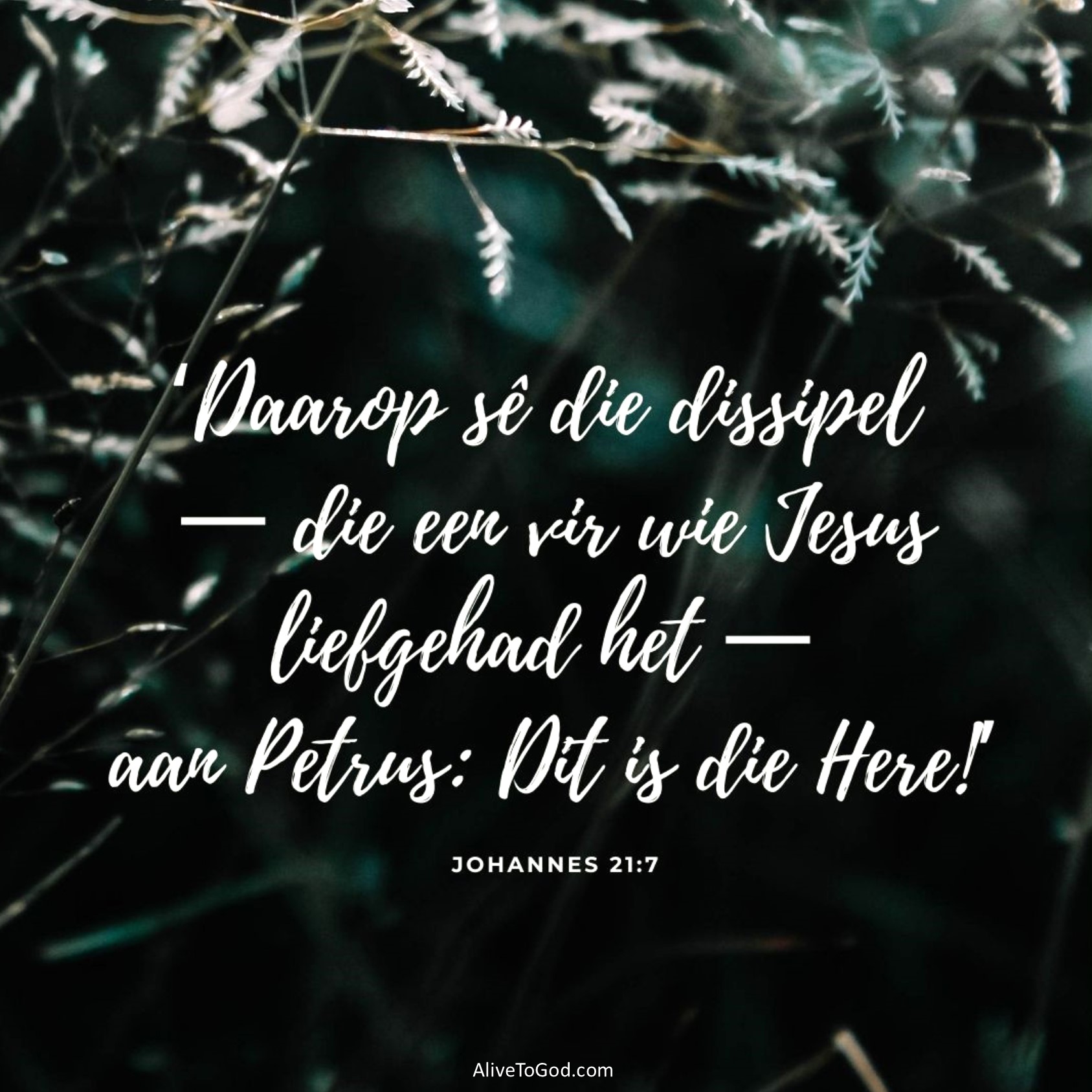 "Daarop sê die dissipel — die een vir wie Jesus liefgehad het — aan Petrus: Dit is die Here!"