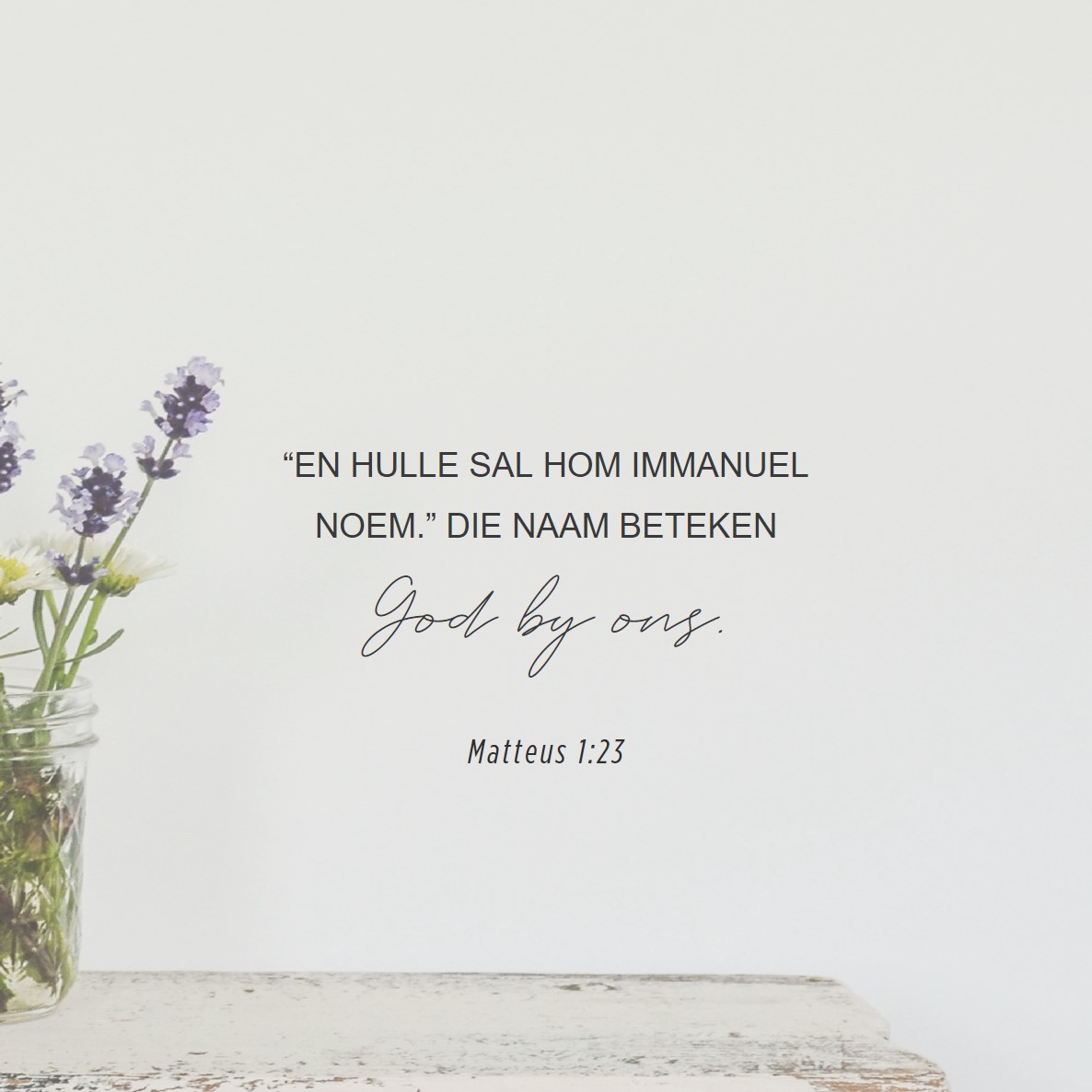 “Die maagd sal swanger word en 'n Seun in die wêreld bring, en hulle sal Hom Immanuel noem.” Die naam beteken God by ons.