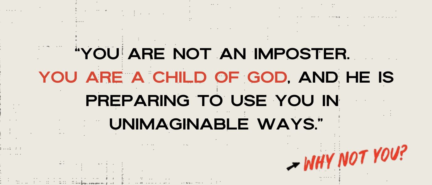 Victory isn’t about believing in your achievements and skills. It is about recognizing who you are and what you have in Jesus Christ. You are not an imposter. You are a child of God, and He is preparing to use you in unimaginable ways.