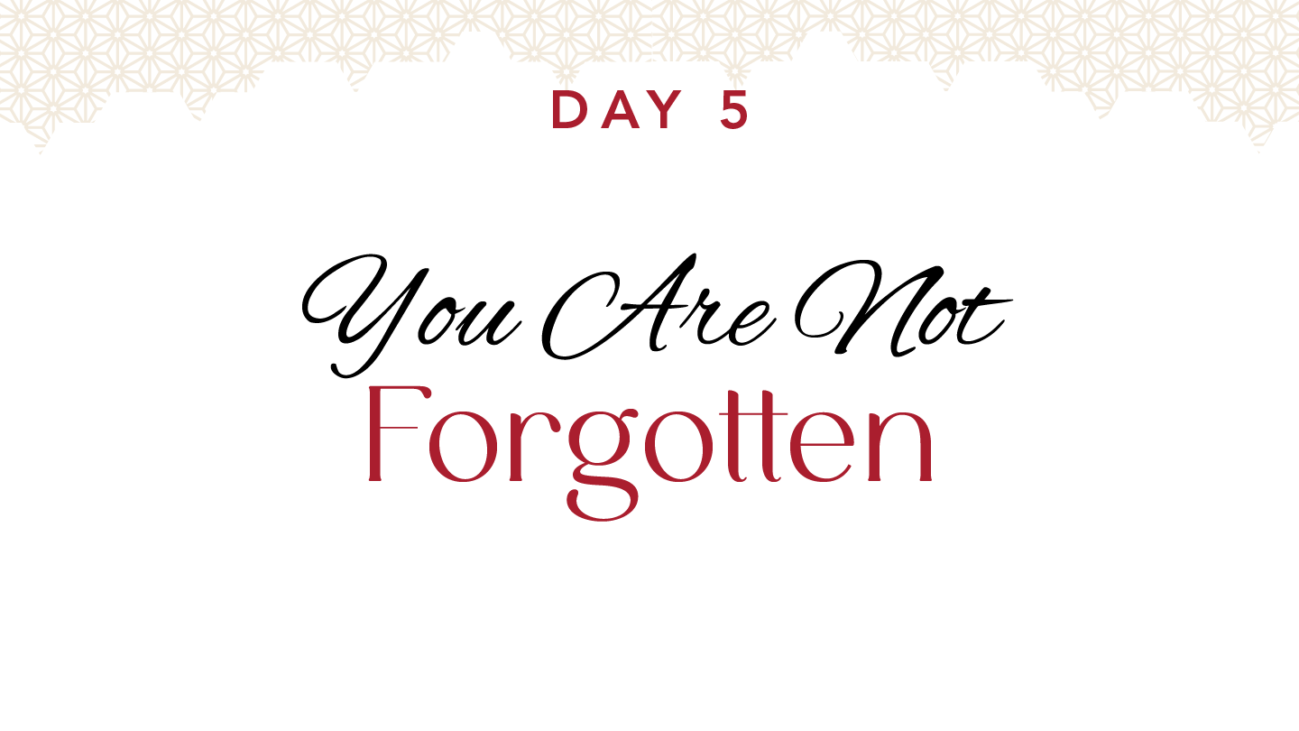 Isaiah 49:15 (NKJV) comfortingly says, “Can a woman forget her nursing child, and not have compassion on the son of her womb? Surely they may forget, yet I will not forget you.”