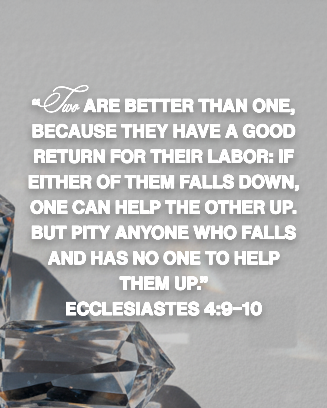 Community is where burdens are shared and courage is restored. It is where we are reminded of truth when we forget, where others help lift us when we stumble, and where we get to do the same for them. Just as a diamond reflects light through many facets, God’s glory is seen more fully when His people walk together.