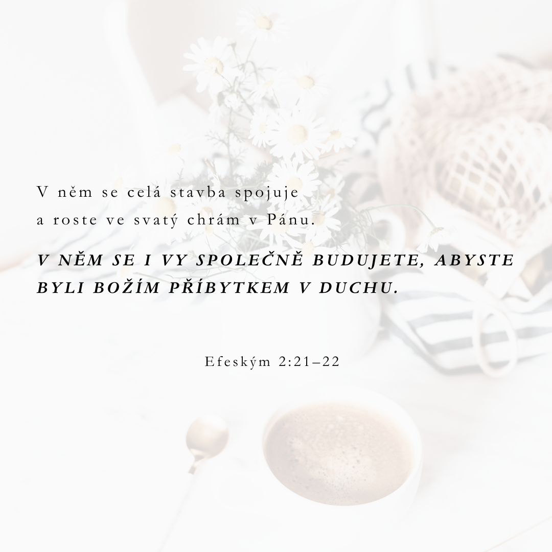 My jako věřící jsme součástí stavebního materiálu, který tvoří církev. Jsme budováni v Boží chrám. To znamená, že v životě církve máme svůj účel. Bůh každého člověka jedinečně obdaroval, aby byl požehnáním a abychom si navzájem pomáhali na cestě víry.