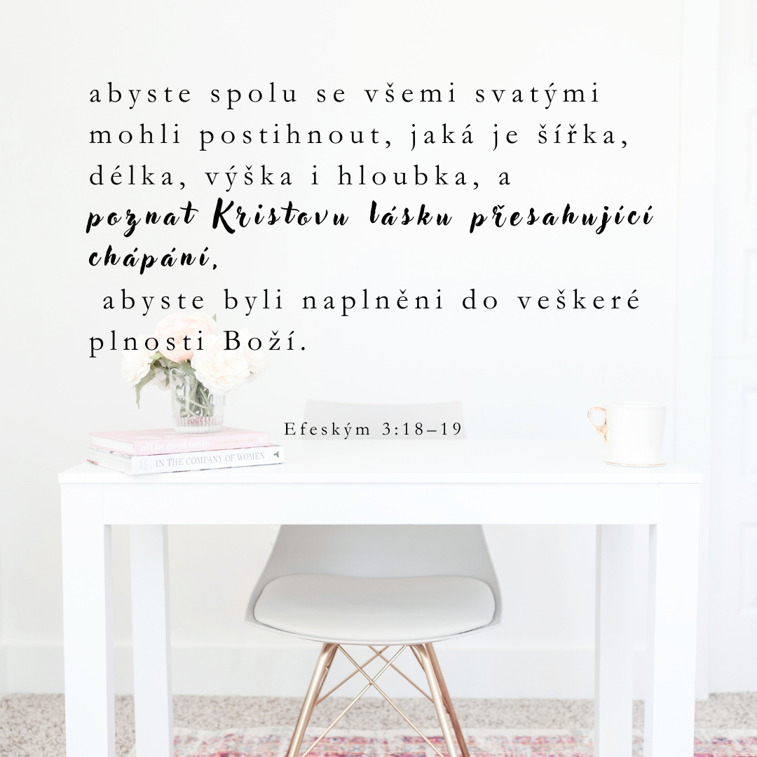 Vše začíná tím, že jsme zakořeněny a zakotveny v lásce. Jak píše Pavel, tato láska přesahuje vše, co jsme kdy na této straně nebe zažily. Je větší než láska rodičů, prarodičů, manželů nebo přátel. Je větší než láska, kterou chováte ke svým dětem nebo ke svým blízkým.