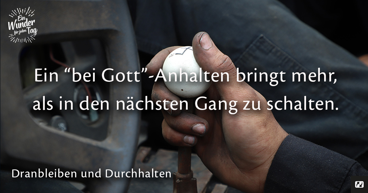 Gott will dir alles geben, doch dazu musst du anhalten - und mit Ihm leben! Denn ja: “Ein “bei Gott”-Anhalten bringt mehr, als in den nächsten Gang zu schalten.”