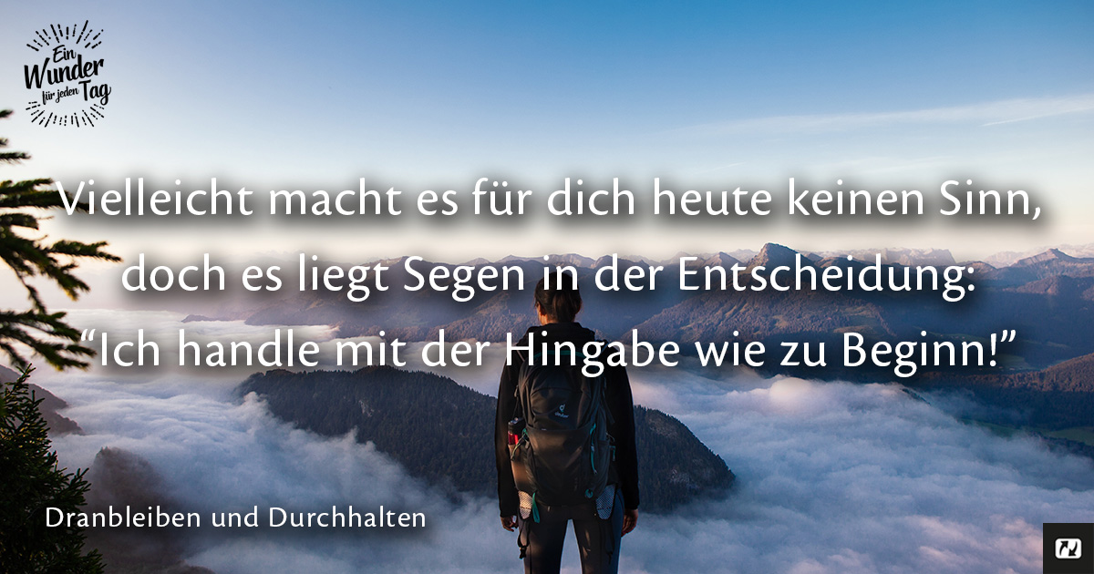 Vielleicht macht es für dich heute keinen Sinn, doch es liegt ein Segen in der Entscheidung: “Ich handle mit der Hingabe wie zu Beginn!”