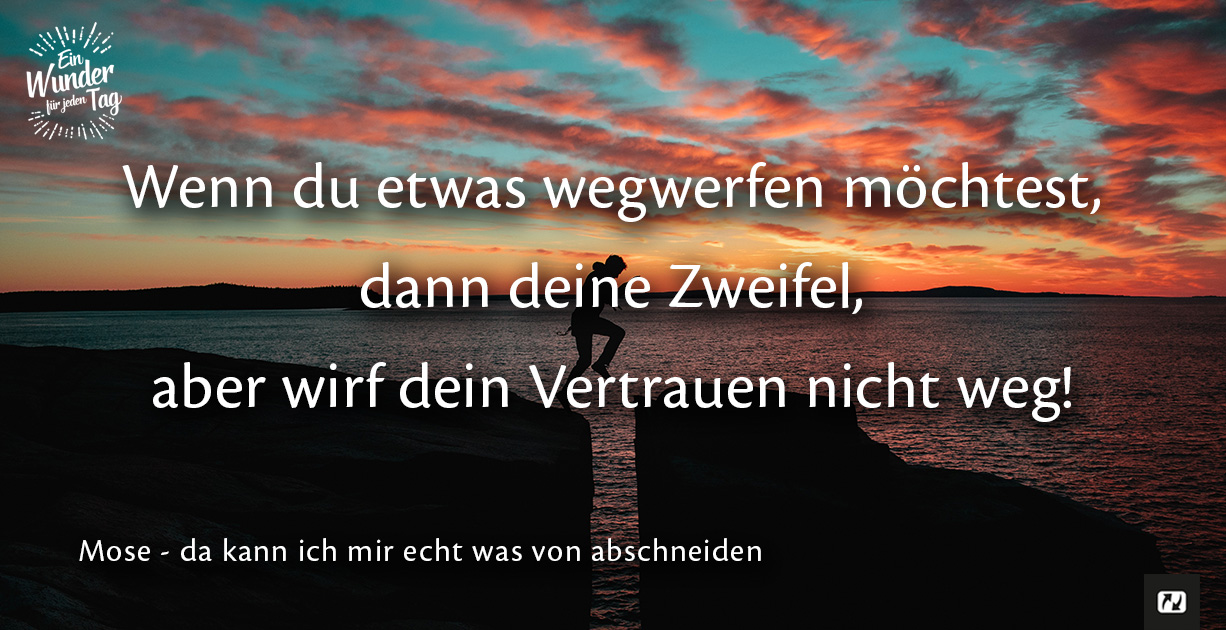Wenn du etwas wegwerfen möchtest, dann deine Zweifel, aber wirf dein Vertrauen nicht weg! (siehe Hebräer 10,35 HFA)