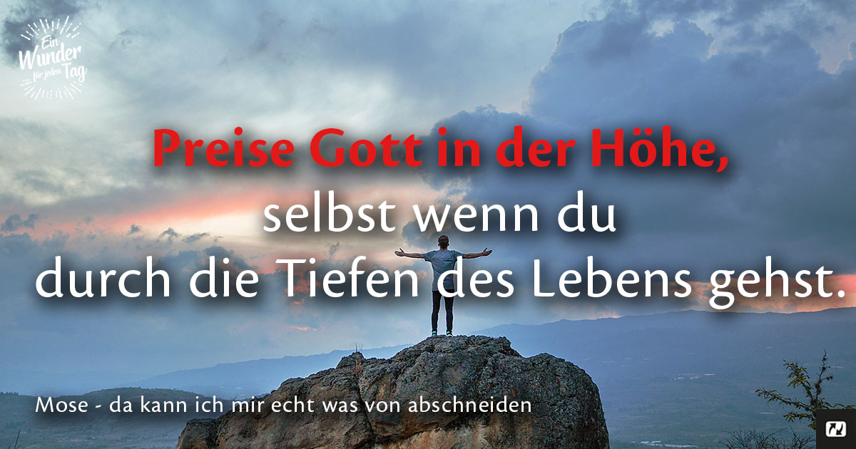 Preise Gott in der Höhe, selbst wenn du durch die Tiefen des Lebens gehst. Und du wirst die “Tiefe des Moments” erfahren, weil du Gott in der Höhe - gerade dort wie sonst nirgendwo - erlebst.