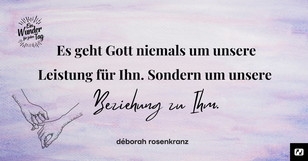 Es geht Gott niemals um unsere Leistung für Ihn. Sondern um unsere Beziehung zu Ihm.