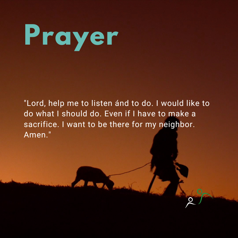"Lord, help me to listen ánd to do. I would like to do what I should do. Even if I have to make a sacrifice. I want to be there for my neighbor. Amen."