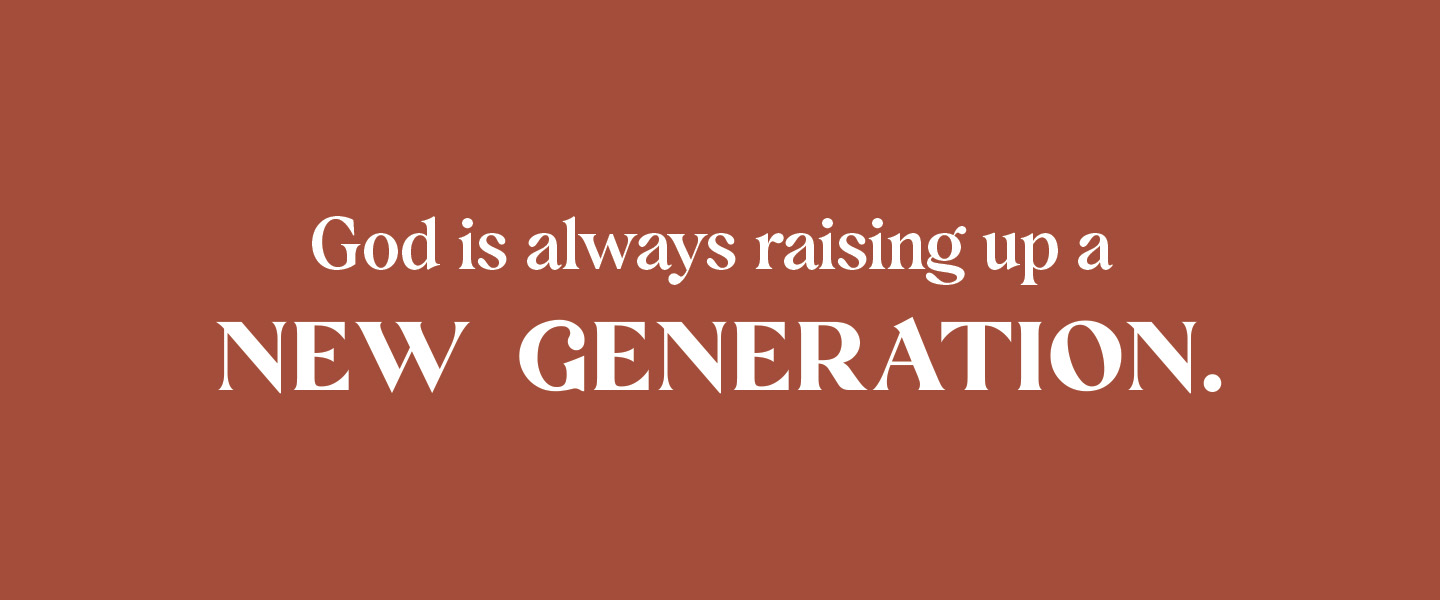 It is wise for us to keep in mind that we are not the last generation of Jesus-followers on this planet. God is raising up a new group of teens and young adults who are bold, deep, passionate, and unafraid of living and dying for Christ. He will never leave Himself without zealous witnesses.