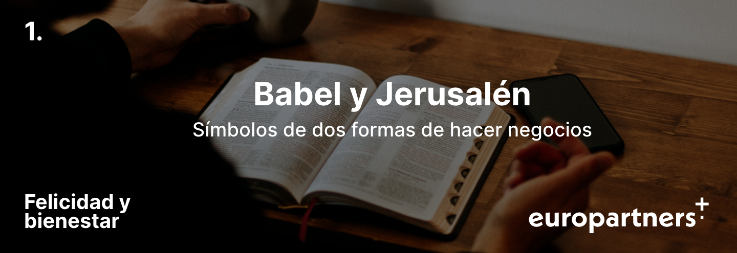Las ciudades bíblicas de Babilonia y Jerusalén son símbolos de dos formas de pensar sobre la felicidad y los negocios. Babilonia está representada por la parte del mundo de los negocios que cree que la felicidad y el bienestar se encuentran en 'la autorrealización a través de ganar mucho dinero, tener símbolos de estatus y poder, y ganarle a la competencia' El lema que acompaña a esto es: el fin justifica los medios.
