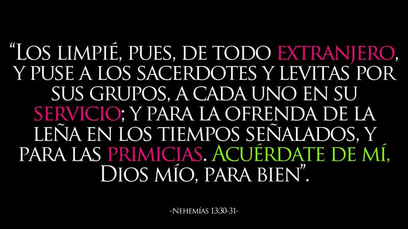 Nehemías, de rodillas, le rinde cuentas a Dios de todo lo que había hecho y termina su oración diciendo: "Señor, esto es lo que me pediste. Misión cumplida. Ahora te pido yo a ti, sólo una cosa: Acuérdate de mí."