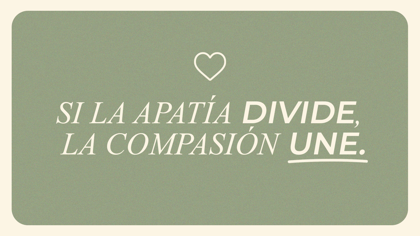Si la apatía divide, la compasión une. Decide hoy salir de la indiferencia y empezar a amar como Cristo nos amó: con un amor que siente, que sufre, que celebra y que sostiene.