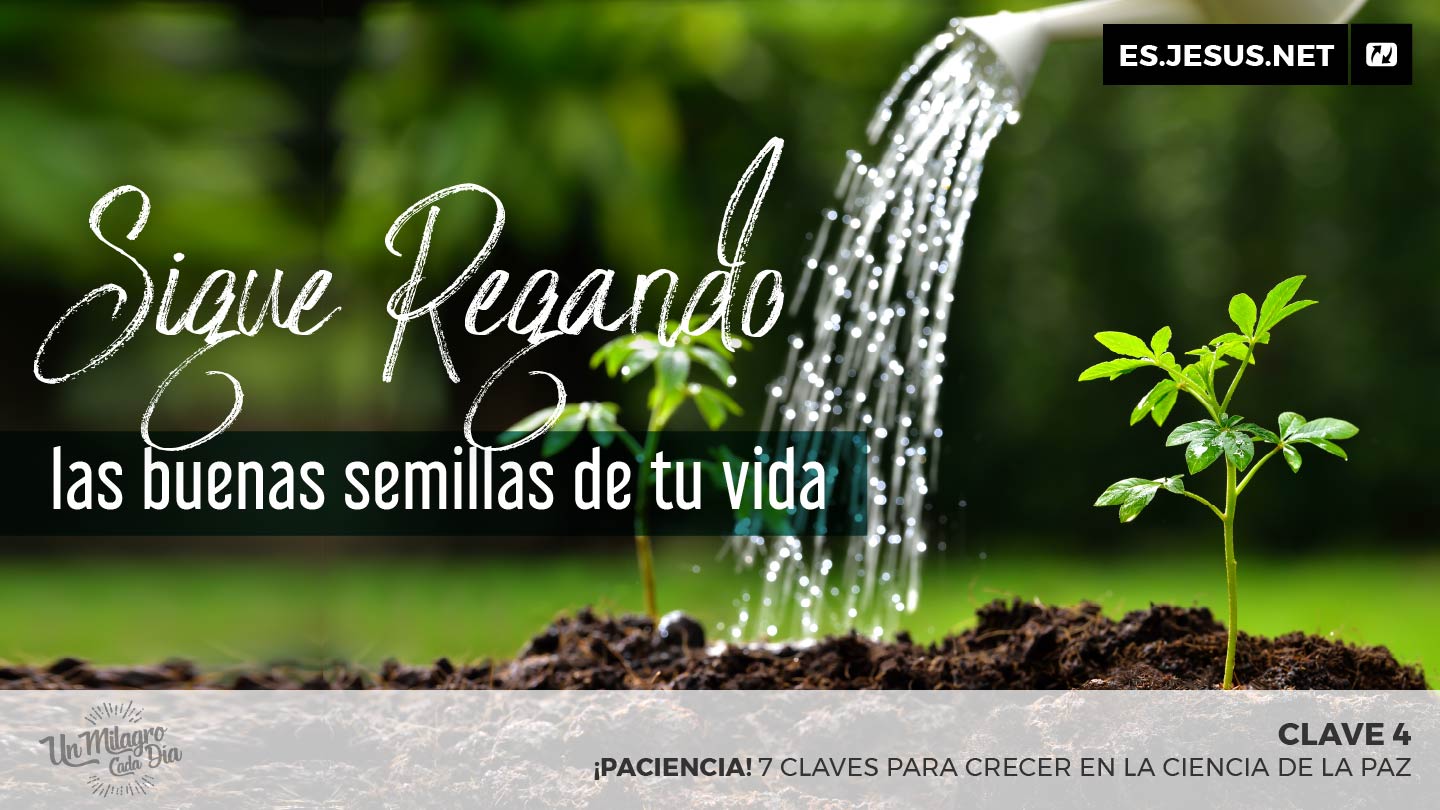 Querido/a amigo/a, sigue regando todas las buenas semillas que has plantado a lo largo de tu vida. Quizá te has desanimado y has dejado de leer la Biblia porque crees que no la entiendes, o has tirado la toalla y has dejado de estudiar un idioma, de ir al gimnasio, o de orar en las mañanas. ¡Hoy tienes la oportunidad de empezar de nuevo a regar todas estas plantas! Dedícales un poco de tu tiempo de manera constante, aunque no veas resultados inmediatos, y te aseguro que producirán frutos preciosos en tu vida a su debido tiempo.