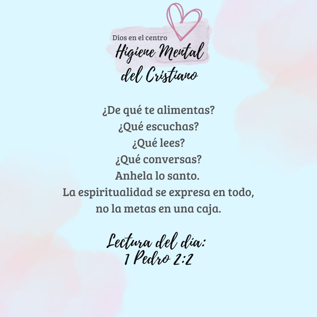 Este plan te lleva al centro: Dios. Higiene mental se define como la reducción o eliminación de lo que obstruye un equilibrio psicoemocional. La Biblia marca la ruta para tener una buena higiene mental, y aún más, la recomendada por nuestro Creador. ¿Quién sino Él para saber cómo funcionamos? La higiene que se alcanza en la mente, como consecuencia de la presencia de Dios como centro, es inigualable.