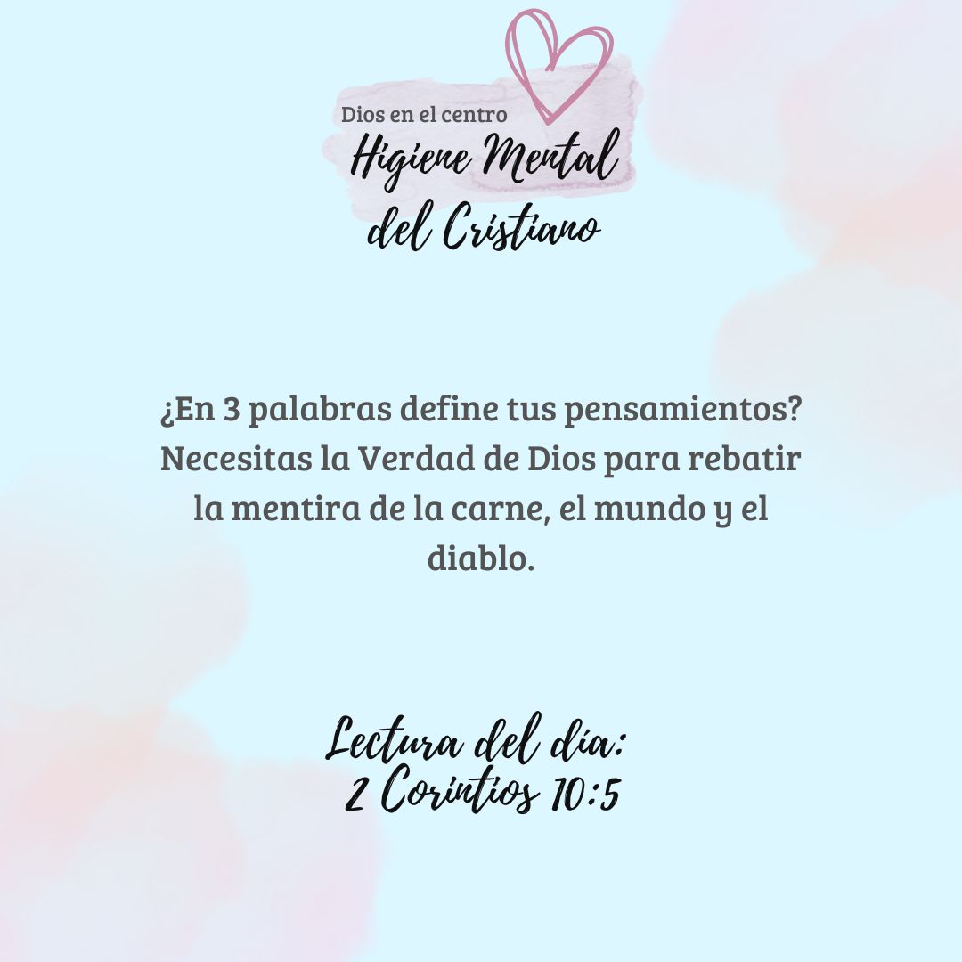 Este plan te lleva al centro: Dios. Higiene mental se define como la reducción o eliminación de lo que obstruye un equilibrio psicoemocional. La Biblia marca la ruta para tener una buena higiene mental, y aún más, la recomendada por nuestro Creador. ¿Quién sino Él para saber cómo funcionamos? La higiene que se alcanza en la mente, como consecuencia de la presencia de Dios como centro, es inigualable.