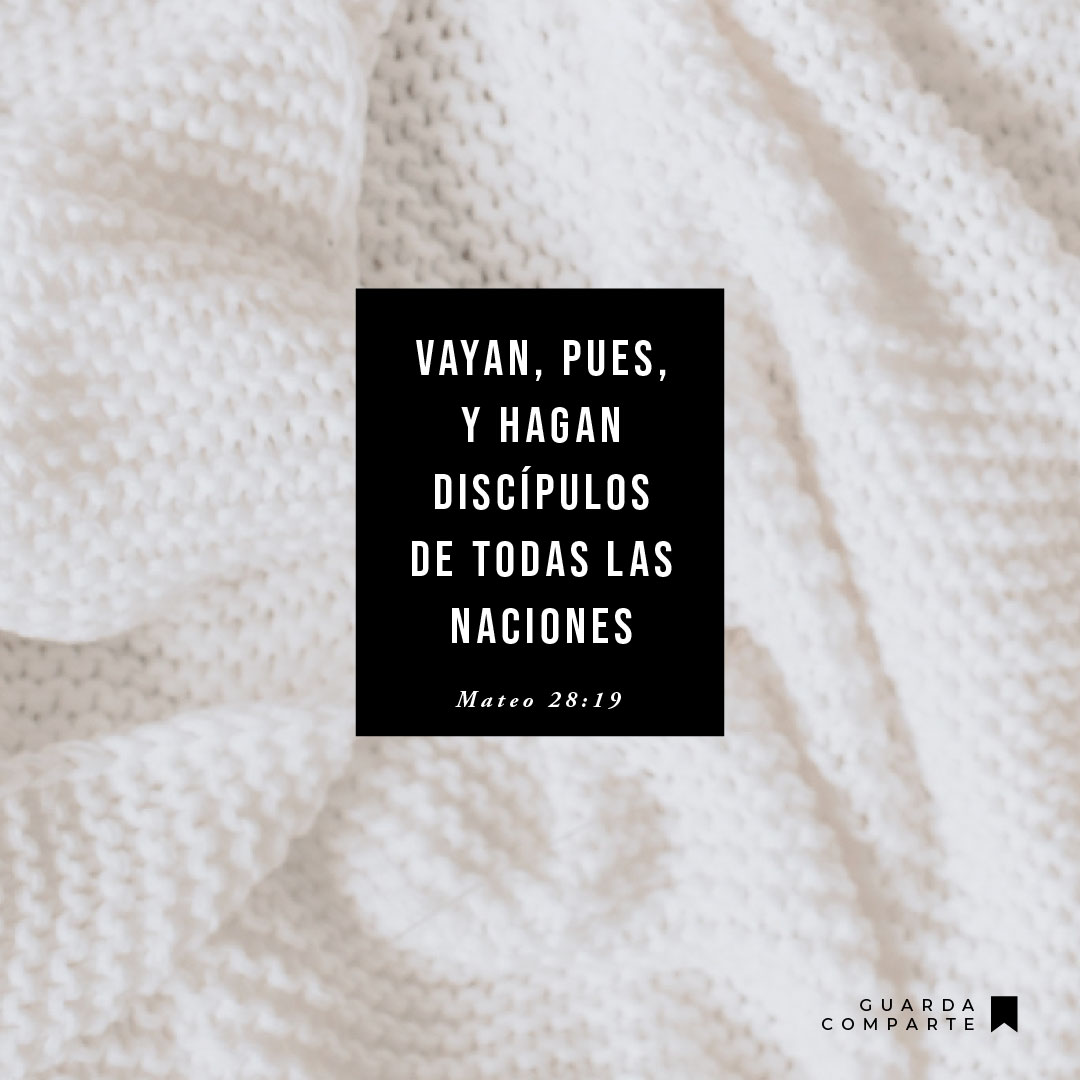 —Toda potestad me es dada en el cielo y en la tierra. 19 Por tanto, id y haced discípulos a todas las naciones, bautizándolos en el nombre del Padre, del Hijo y del Espíritu Santo, y enseñadles a guardar todas las cosas que os he mandado. Sabed que yo estoy con vosotros todos los días, hasta el fin del mundo.”