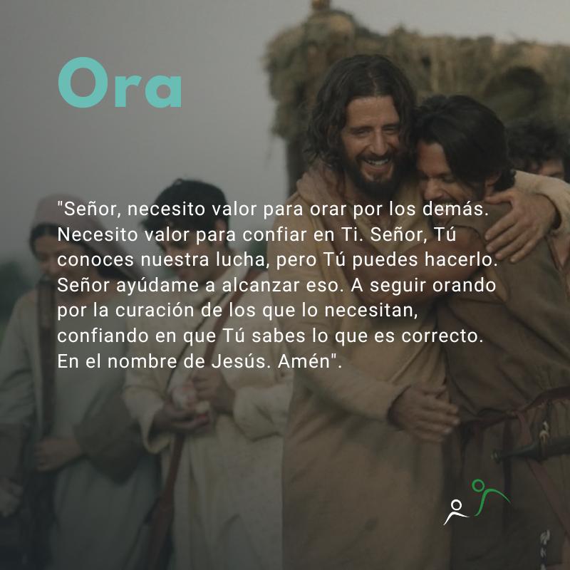 Ora: "Señor, necesito valor para orar por los demás. Necesito valor para confiar en Ti. Señor, Tú conoces nuestra lucha, pero Tú puedes hacerlo. Señor ayúdame a alcanzar eso. A seguir orando por la curación de los que lo necesitan, confiando en que Tú sabes lo que es correcto. En el nombre de Jesús. Amén".
