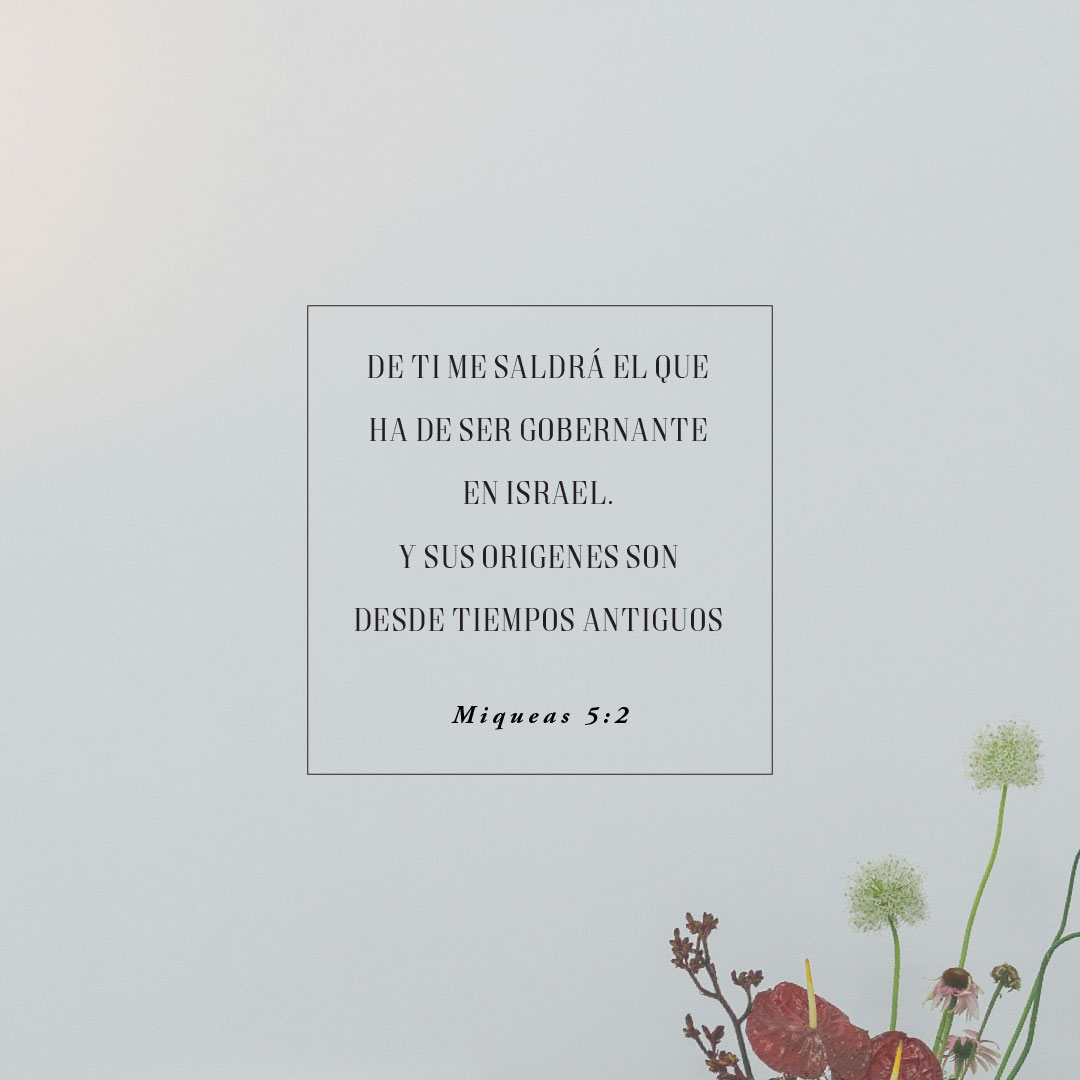 “Pero tú, Belén Efrata, tan pequeña entre las familias de Judá, de ti me saldrá el que será Señor en Israel; sus orígenes se remontan al inicio de los tiempos, a los días de la eternidad".