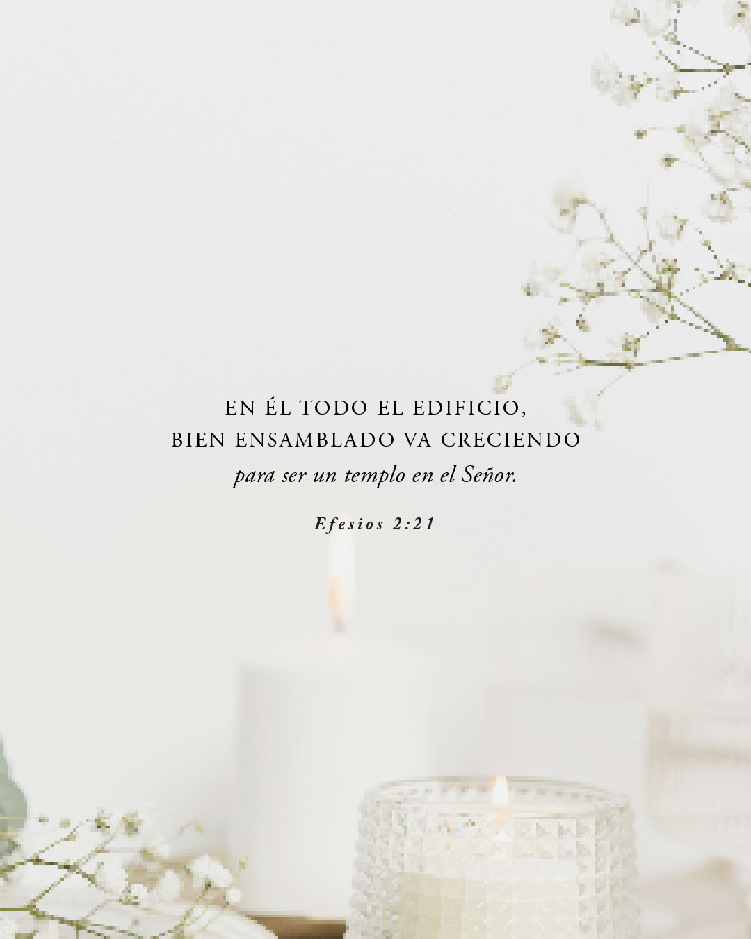 En él, todo el edificio, bien coordinado, va creciendo para ser un templo santo en el Señor; en él también vosotros sois juntamente edificados para morada de Dios en el Espíritu.