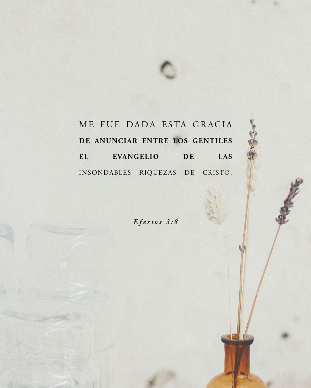 A mí, que soy el más insignificante de todos los creyentes, me fue dada esta gracia de anunciar entre los gentiles el evangelio de las insondables riquezas de Cristo.