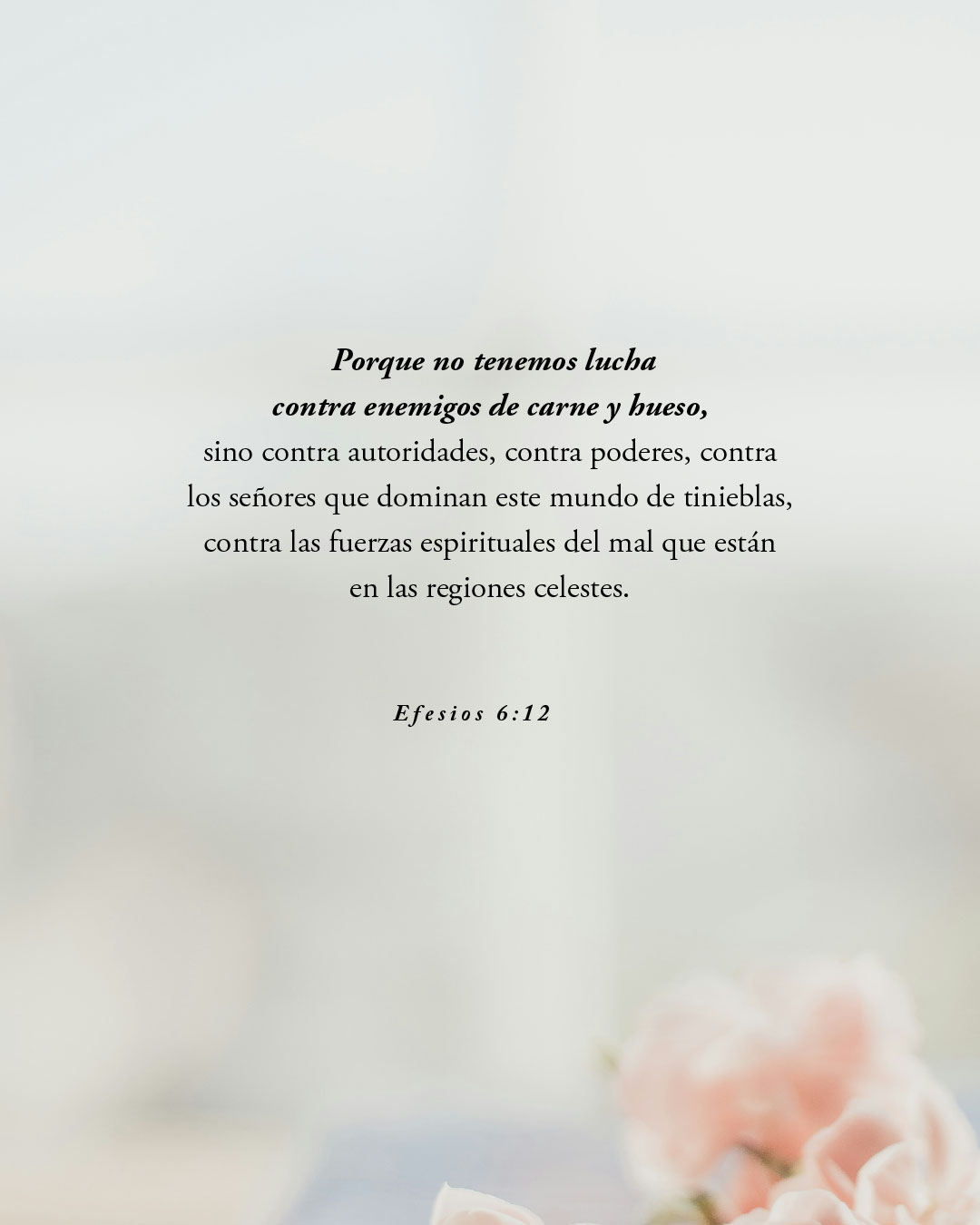 Porque no tenemos lucha contra sangre y carne, sino contra principados, contra potestades, contra los gobernadores de las tinieblas de este siglo, contra huestes espirituales de maldad en las regiones celestes