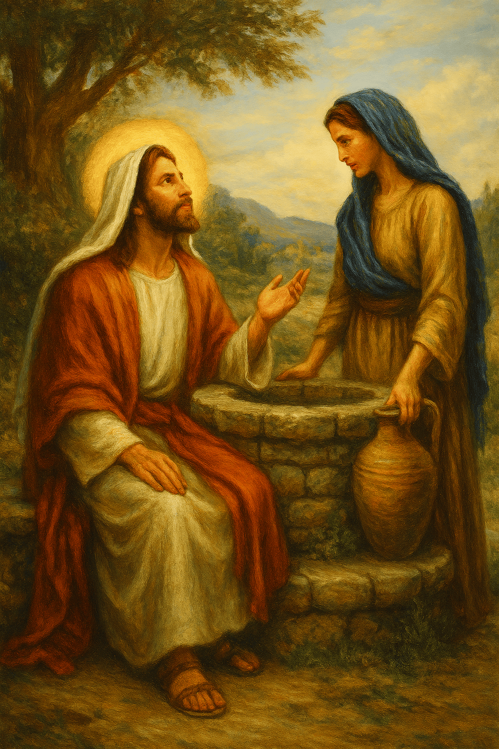 En esta historia Jesús rompe barreras culturales y religiosas al buscar a una mujer samaritana junto al pozo, ofreciendo agua viva que satisface más allá de la necesidad física. Su conversación revela su conocimiento íntimo de la vida de ella y su disposición a perdonar, transformar y dar identidad nueva. El encuentro culmina en revelación: Jesús como el Mesías que supera hostilidades y expectativas, llamando a una verdadera adoración en espíritu y en verdad.