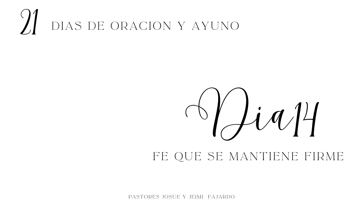 Estás por iniciar un tiempo que llevara tu vida espiritual a otro nivel. La Palabra enseña qué ninguna semilla da fruto sin antes caer en tierra; esto significa total rendición a Dios y muchas veces morir a nosotros para que Cristo crezca. Durante 21 días oraremos por la sanidad de áreas específicas en nuestra vida; puedes acompañar este tiempo con un ayuno de santificación. El ayuno no cambia a Dios, ¡nos cambia a nosotros! y allí en esa rendición es donde Su poder se manifiesta. Prepárate: toma tu Biblia, un cuaderno y abre tu corazón. ¡Caminemos juntos con Dios!