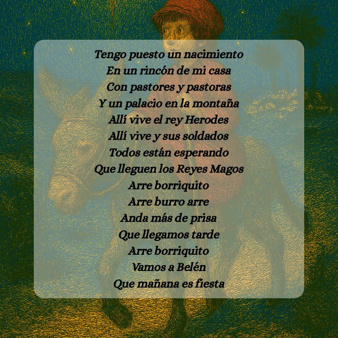 Escucha el villancico “Arre borriquito” aquí: https://youtu.be/G84hbqKRI8M?si=zyg145iSmWNp4EMh