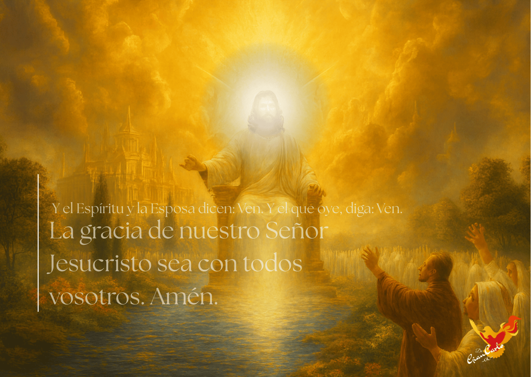 Juan concluye con una oración: ¡Ven, Señor Jesús!, expresando el anhelo de la Iglesia por la segunda venida de Cristo.