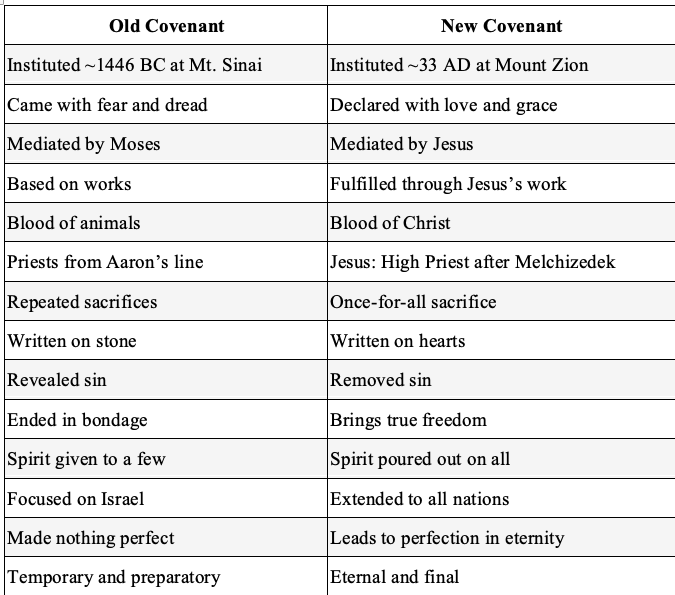 Just to drive home the point, see the chart linked below that points out the key differences between the old and new covenant: