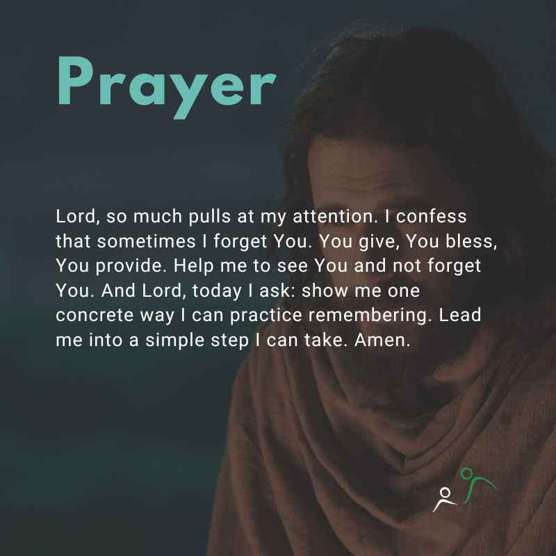 "Lord, so much pulls at my attention. I confess that sometimes I forget You. You give, You bless, You provide. Help me to see You and not forget You. And Lord, today I ask: show me one concrete way I can practice remembering. Lead me into a simple step I can take. Amen."