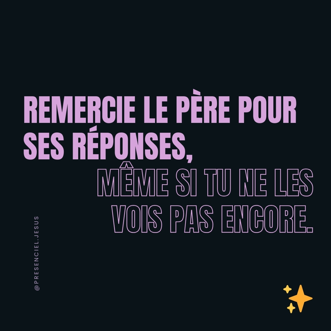 Ainsi, lorsque tu pries, remercie mon Père pour ses réponses à tes prières, même si tu ne les vois pas encore.