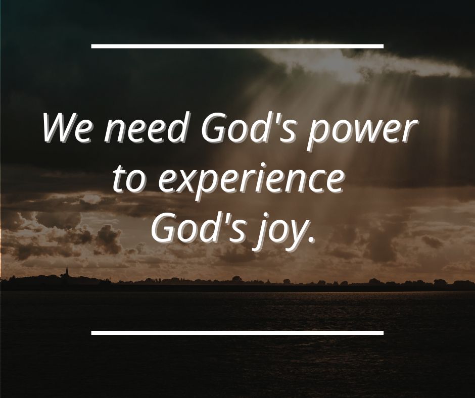 Joy has to be an outcome that the Spirit works in us, as we remain rooted and dependent on God’s grace. This is why Jesus told his disciples of the importance of remaining or abiding in John 15. We need God's power to experience God's joy. As we soak and marinate our hearts and minds in His word like we marinate a piece of meat before we cook it, we find a more profound connection growing with God. With roots in God's power, those connections bear fruit, including joy.