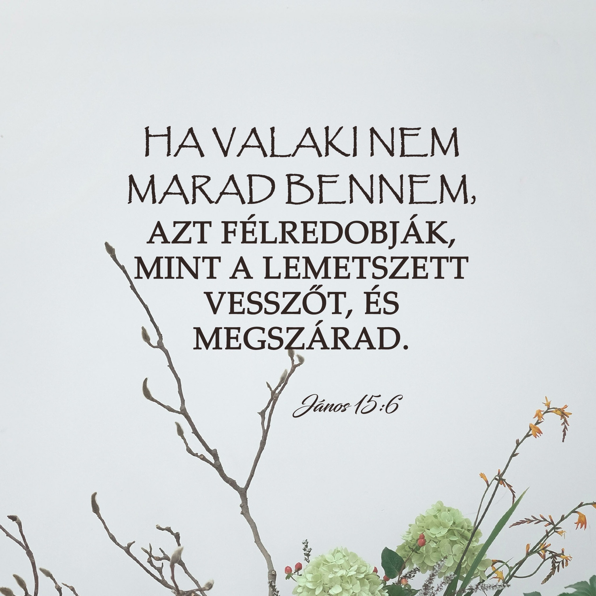 „Ha valaki nem marad bennem, azt félredobják, mint a lemetszett vesszőt, és megszárad. Ezután a száraz vesszőket összegyűjtik, tűzre dobják, és megégnek.”
