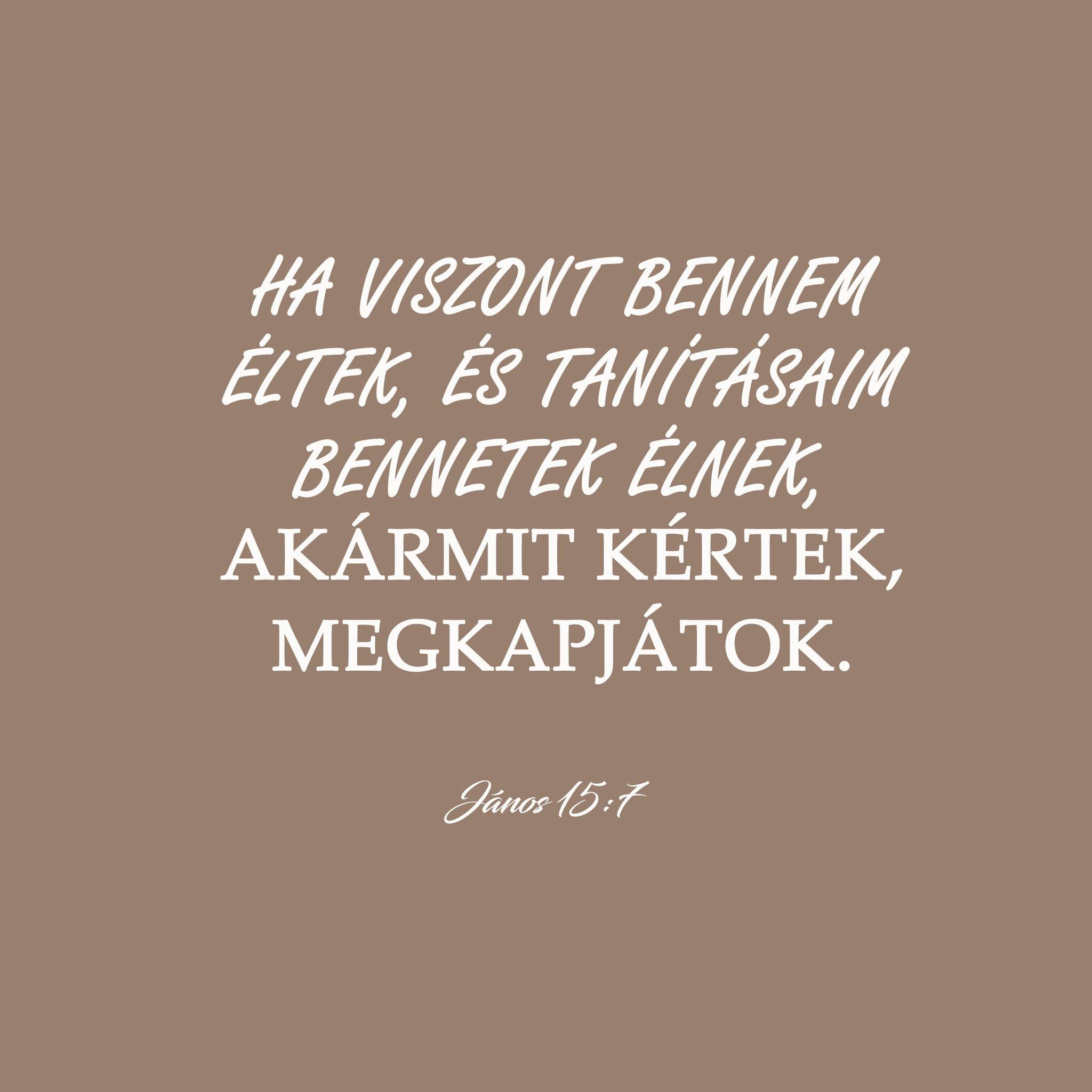 A mai versben Jézus egy meglepő ígéretet tesz azoknak, akik Őbenne maradnak. Azt mondja, hogy bármit kérnek az imádságban, megadatik nekik. A 16. versben újból megismétli ezt, és azt mondja, hogy bármit kérnek tanítványai az Ő nevében, az Atya megadja nekik.