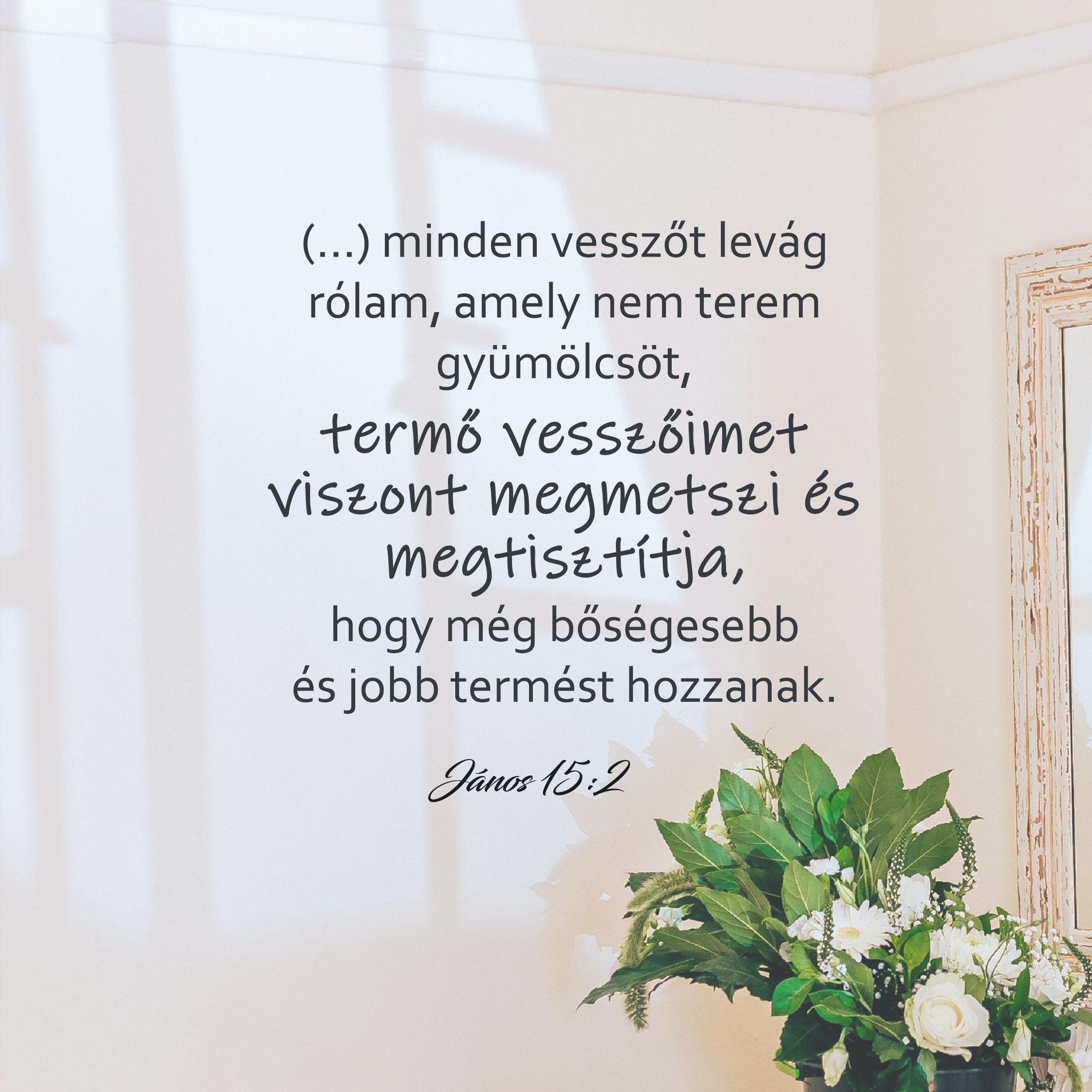 „Minden vesszőt levág rólam, amely nem terem gyümölcsöt, termő vesszőimet viszont megmetszi és megtisztítja, hogy még bőségesebb és jobb termést hozzanak.”