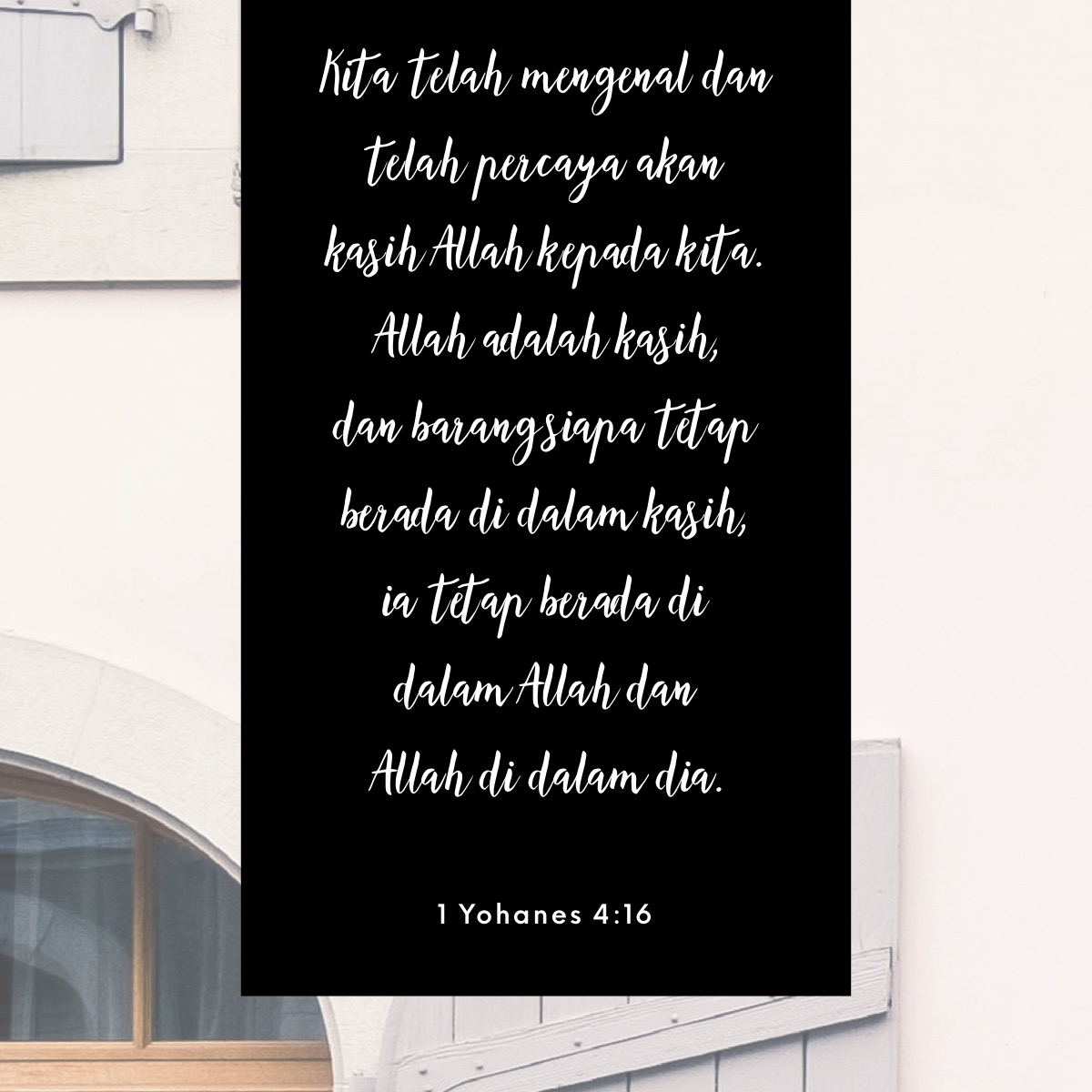 Kita telah mengenal dan telah percaya akan kasih Allah kepada kita. Allah adalah kasih, dan barangsiapa tetap berada di dalam kasih, ia tetap berada di dalam Allah dan Allah di dalam dia.
