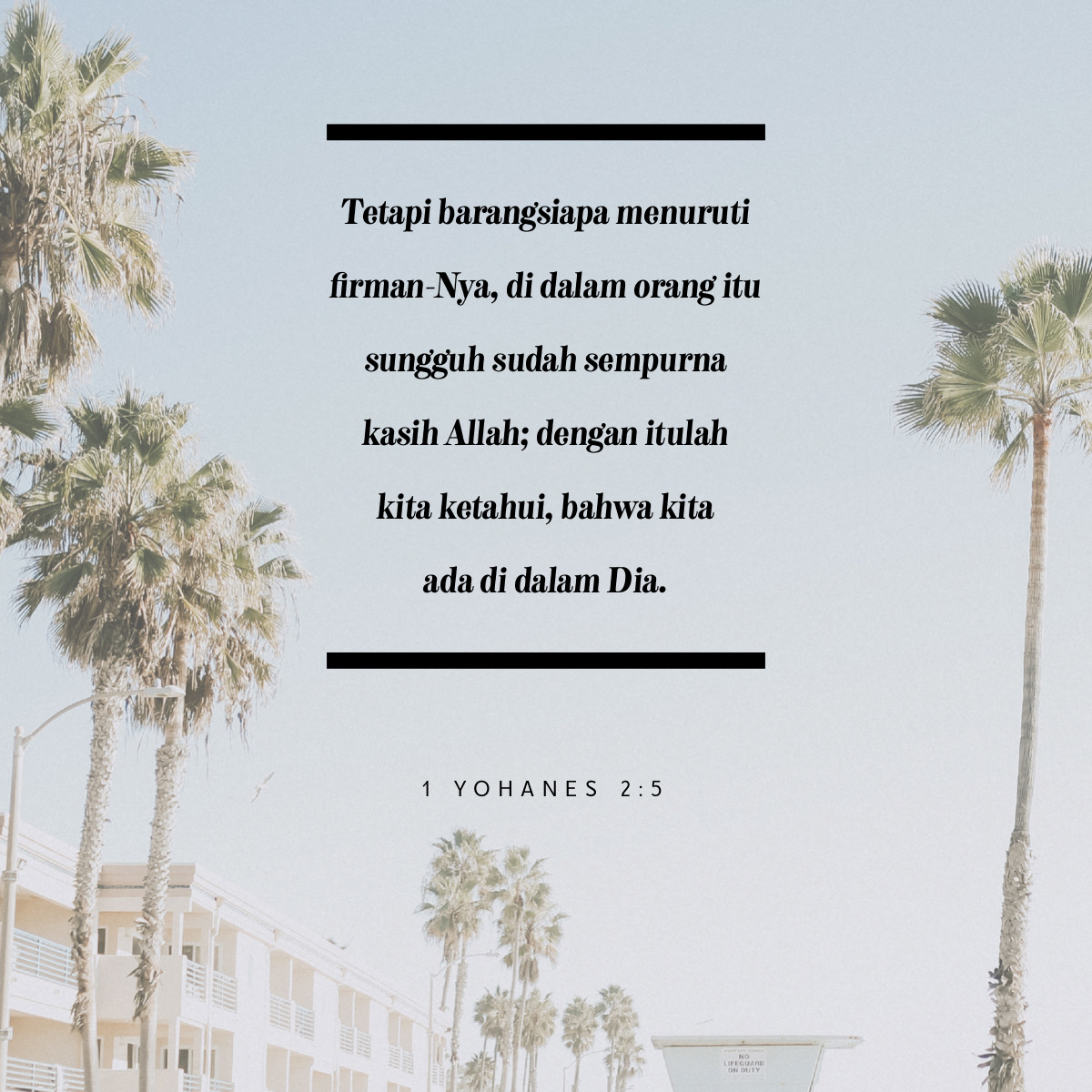 Tetapi barangsiapa menuruti firman-Nya, di dalam orang itu sungguh sudah sempurna kasih Allah; dengan itulah kita ketahui, bahwa kita ada di dalam Dia.
