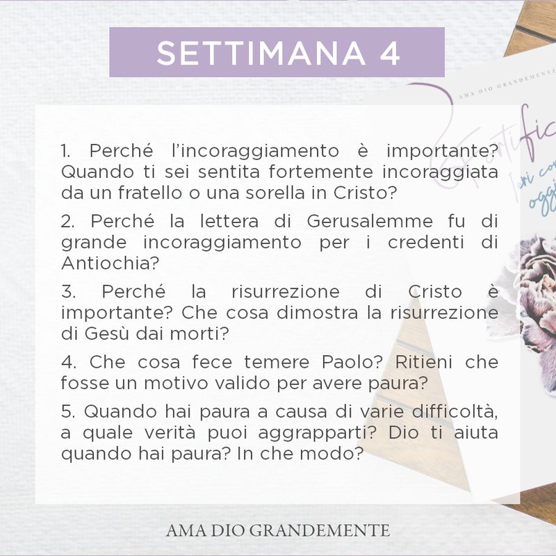 Oggi, approfitta per rileggere i brani principali della settimana e rispondi alle domande di riflessione che ti proponiamo. Puoi annotare le risposte su un quaderno e condividerle con chi vuoi!