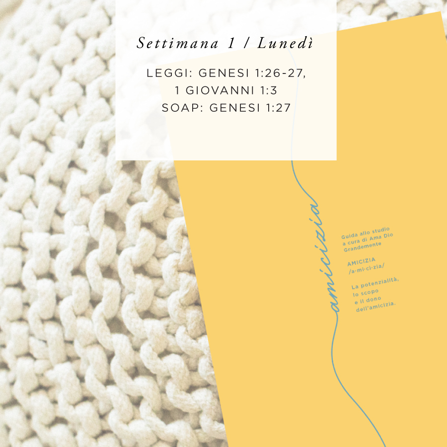Signore, Grazie di avermi creato a Tua immagine. Grazie per le relazioni nella mia vita. Aiutami a ricordare quanto siano importanti gli altri, essendo stati creati anche loro a Tua immagine. Amen!