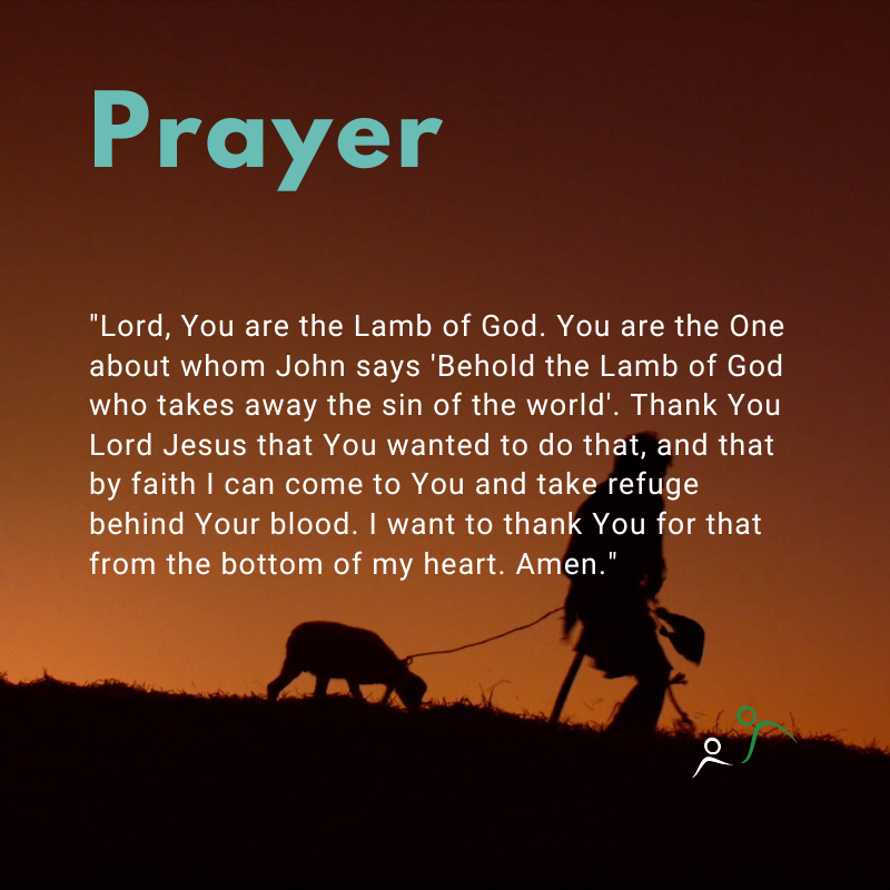 "Lord, You are the Lamb of God. You are the One about whom John says 'Behold the Lamb of God who takes away the sin of the world'. Thank You, Lord Jesus, that You wanted to do that, and that by faith I can come to You and take refuge behind Your blood. I want to thank You for that from the bottom of my heart. Amen."