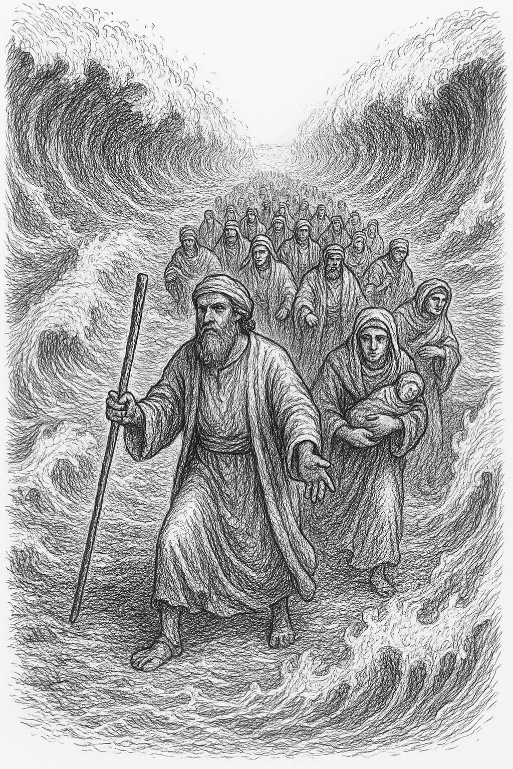 At last, Pharaoh released the Israelites, but when he pursued with his army, God split the Red Sea and led His people safely through on dry ground. As the waters rushed back to their course, Israel’s enemies drowned behind them. In one sweeping act of power and mercy, God redeemed His people and proved Himself their Deliverer.