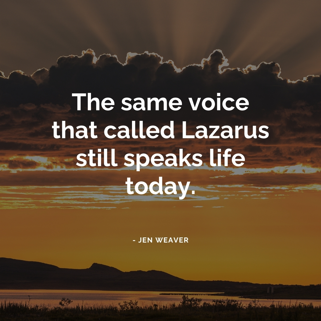 I try to picture that moment. Silence before Jesus spoke. Gasps when they heard rustling from inside the tomb. The shock when Lazarus shuffled out, still wrapped in burial clothes but very much alive.