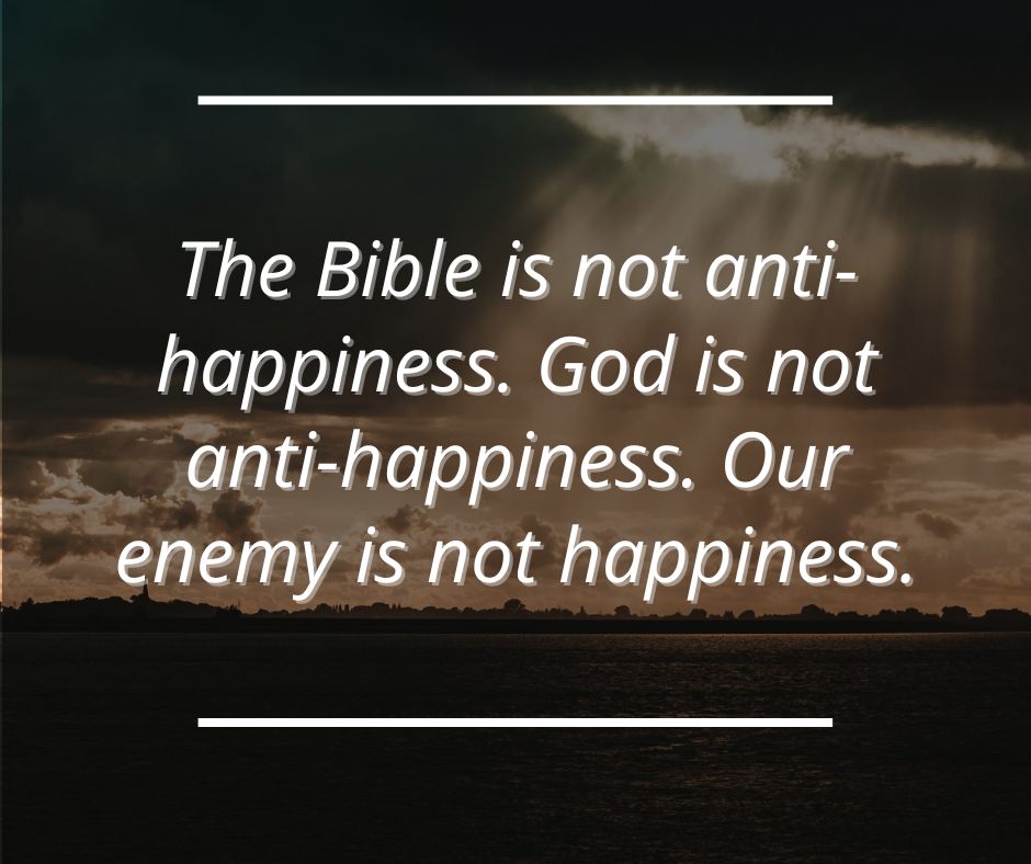 We live in a culture obsessed with happiness. It's people's number one goal. If a marriage stops making us happy, we end it. If this job no longer makes me happy, we quit and find a new one. The church sometimes can react to this happiness-obsession by treating happiness as an enemy, like Jesus came to make you the most miserable person on earth. But the Bible is not anti-happiness. God is not anti-happiness. Our enemy is not happiness. Satan, our true enemy, deceives us by dissatisfying our souls with what can't satisfy.