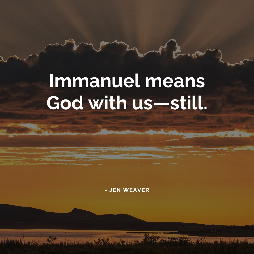 The same God who squeezed Himself into human skin to walk dusty roads with His disciples now walks through your day with you. Through His Spirit, Immanuel is still true: God with us. God with you.