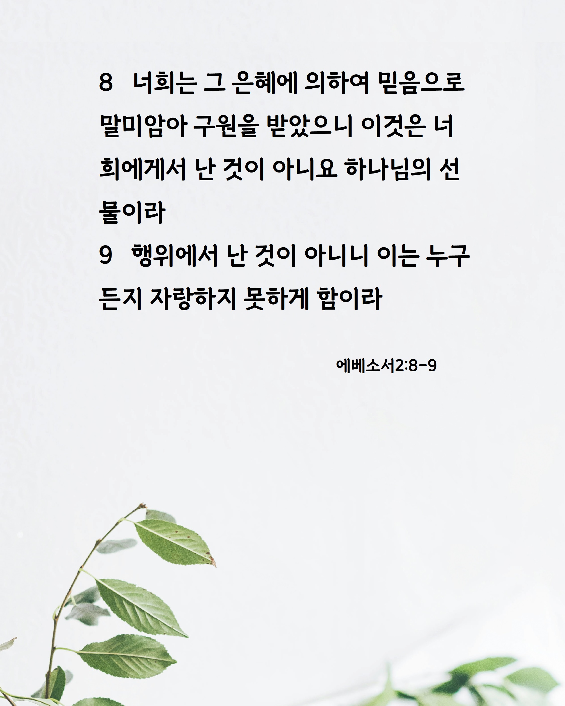 세상은 우리가 열심히 일(공부)을 해야 다른 사람들이 우릴 사랑할 거라고 생각하게 합니다. 하지만, 성경에서 하나님의 사랑은 다릅니다. 하나님의 사랑은 우리 노력으로 얻을 수도, 잃을 수도 없는 선물입니다. 에베소서는 사도 바울이 에베소에 있는 교회에 쓴 편지입니다. 바울은 사람들에게 예수님의 복음을 믿고 하나님의 사랑안에 굳건히 서있으라고 말합니다. 예수님이 그랬던 것처럼 친절, 용서, 사랑을 나타내며 다른 사람들과 함께 사는 방법에 대해서 가르쳐줍니다. 하나님의 사랑은 선물이며, 그 사랑은 모두를 변화시킵니다. 하나님의 사랑을 잘 모르겠거나, 예수를 따르는 것이 궁금하다면 에베소서를 읽어봅시다. 매일 그리스도 안에 산다는 것이 무엇인지 배우고, 무슨 일이 있어도 하나님의 사랑이 우리를 붙잡고 있다는 것을 기억합시다!