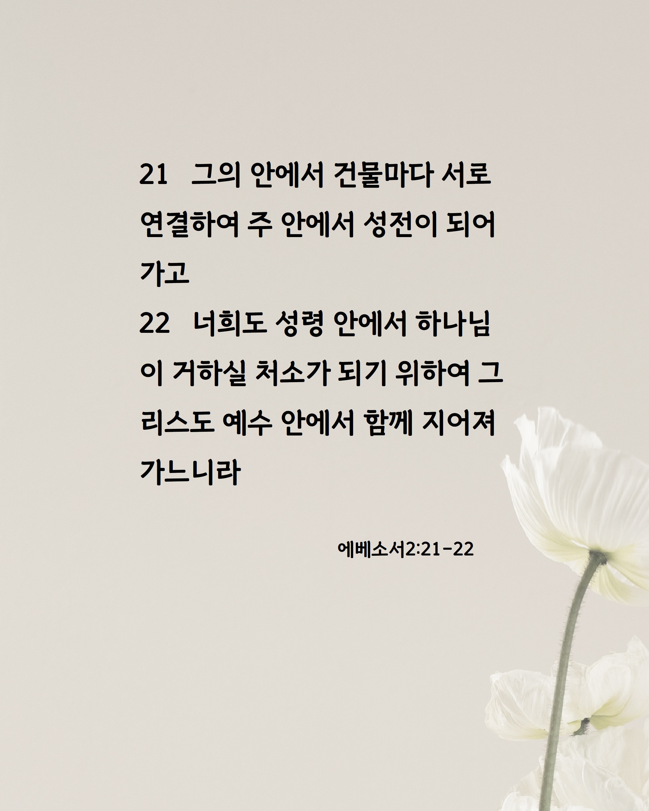 예수님, 교회의 기초가 되어주시고, 저를 위로하시고, 주님과 동행할 수 있도록 공동체를 주시니 감사합니다. 예수님 이름으로 기도드립니다. 아멘