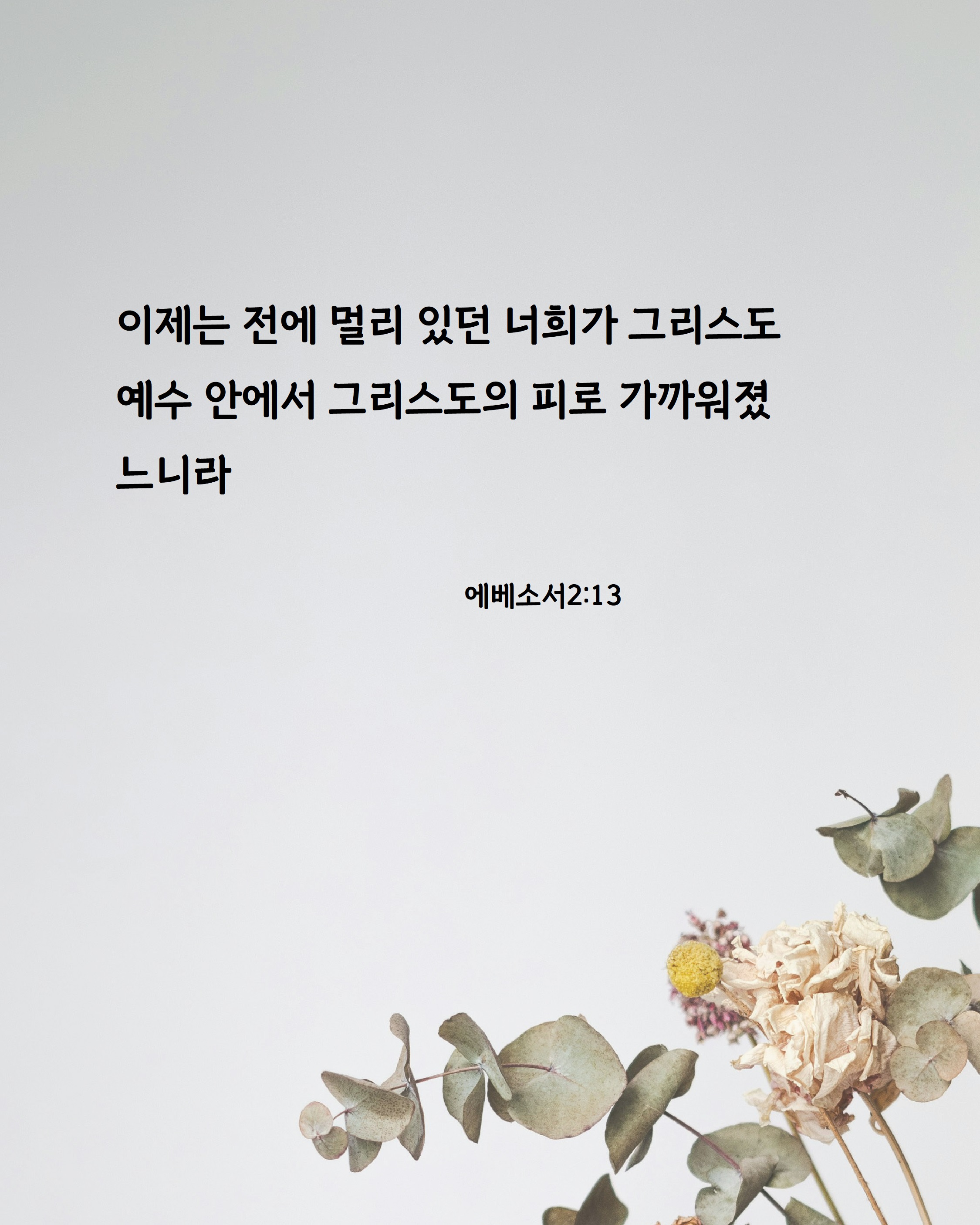 죄로 인해 하나님과 멀어졌던 우리가 예수의 피로 가까워졌습니다.